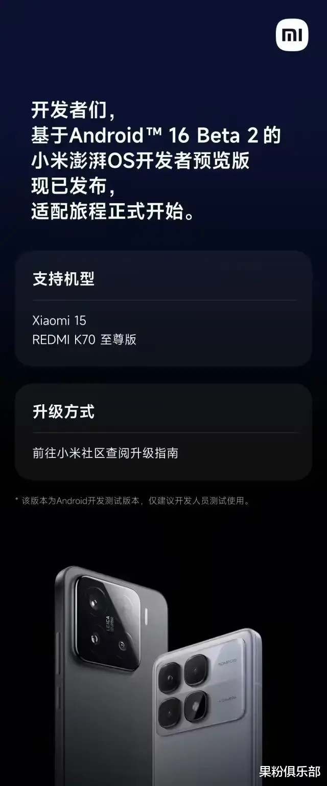 此外,小米 15 和 Redmi K70 至尊版两款机型,从 4 月 8 日起开放了安卓 16 Beta 2 开发者预览版尝鲜。